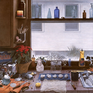 Wir bieten Ihnen eine handgefertigte Reproduktion auf Leinwand des berühmten Kunstwerks 'Arbeitsplatte II (Dirty Dishes II)' von Kent Bellows, aus dem Reproduktionsmuseum.