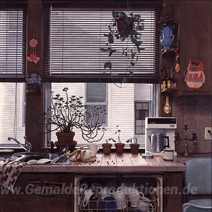 Wir bieten Ihnen eine handgefertigte Reproduktion auf Leinwand des berühmten Kunstwerks 'Arbeitsplatte: März 1983 (Dirty Dishes)' von Kent Bellows, aus dem Reproduktionsmuseum.