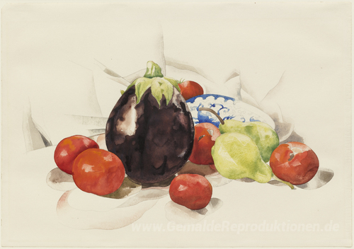 Willkommen in unserer exklusiven Galerie für Ölgemälde, wo Kunst auf Leben trifft. Tauchen Sie ein in das Werk Auberginen und Tomaten von Charles Demuth, einem Meister der amerikanischen Moderne. Seine Werke zeichnen sich durch eine harmonische Verbindung von Farbe und Form aus, wodurch eine einladende Atmosphäre in jedem Raum entsteht.