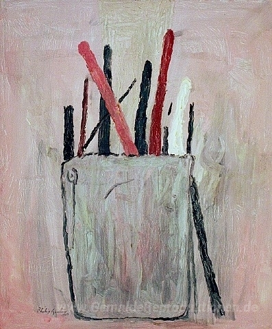 Wir bieten Ihnen eine handgefertigte Reproduktion auf Leinwand des berühmten Kunstwerks 'Bürsten' von Philip Guston, aus dem Reproduktionsmuseum.