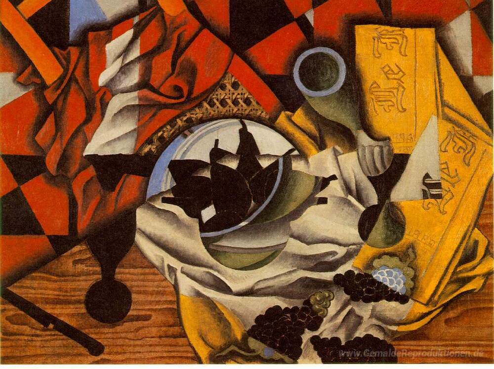 Die detaillierte Ausführung und die kunstvollen Techniken, die in Birnen und Trauben auf einem Tisch zum Einsatz kommen, verleihen diesem Gemälde einen besonderen Charakter. Es bringt Eleganz und Frische in jeden Raum und sorgt für eine warme, inspirierende Atmosphäre. Lassen Sie sich von der Kraft der Kunst begeistern und entdecken Sie, wie ein hochwertiges Ölgemälde von Juan Gris Ihr Zuhause bereichern kann.