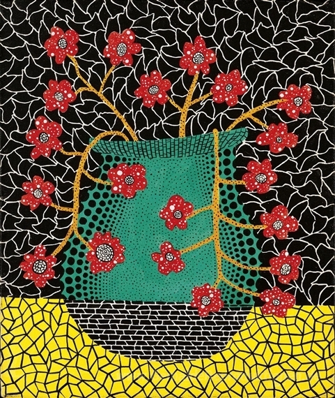 Wir bieten Ihnen eine handgefertigte Reproduktion auf Leinwand des berühmten Kunstwerks 'Blumen' von Yayoi Kusama, aus dem Reproduktionsmuseum.