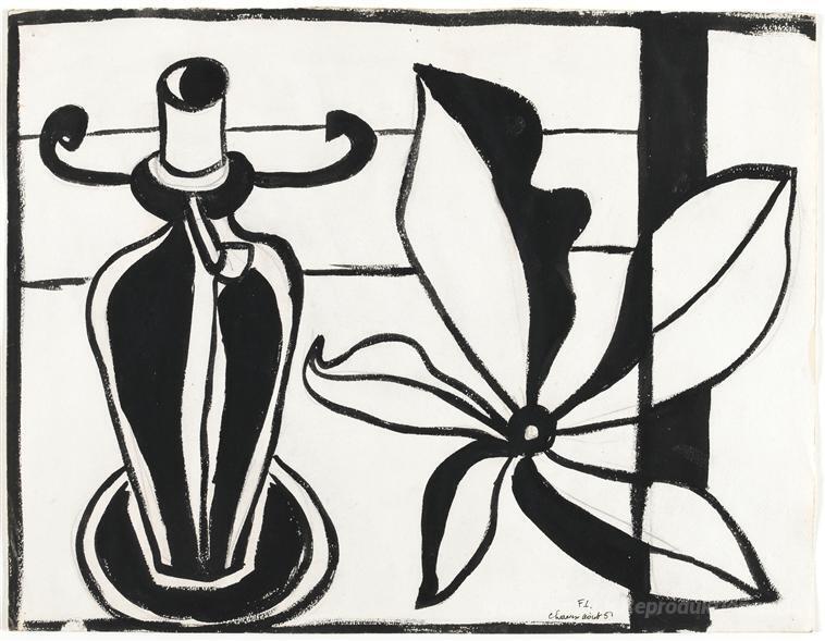 Wir bieten Ihnen eine handgefertigte Reproduktion auf Leinwand des berühmten Kunstwerks 'Blumenlampe' von Fernand Leger, aus dem Reproduktionsmuseum.