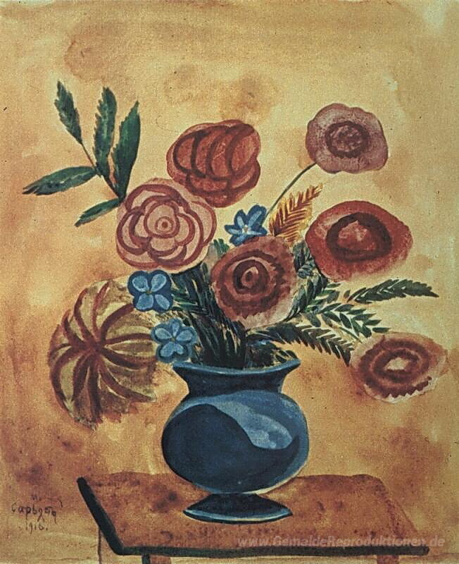 Wir bieten Ihnen eine handgefertigte Reproduktion auf Leinwand des berühmten Kunstwerks 'Blumenstrauß im blauen Vase' von Martiros Saryan, aus dem Reproduktionsmuseum.