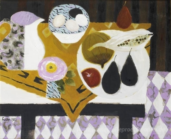 Wir bieten Ihnen eine handgefertigte Reproduktion auf Leinwand des berühmten Kunstwerks 'Bowl of Eggs' von Mary Fedden, aus dem Reproduktionsmuseum.