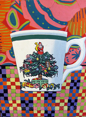 Wir bieten Ihnen eine handgefertigte Reproduktion auf Leinwand des berühmten Kunstwerks 'Christmas Cup' von Joan Brown, aus dem Reproduktionsmuseum.