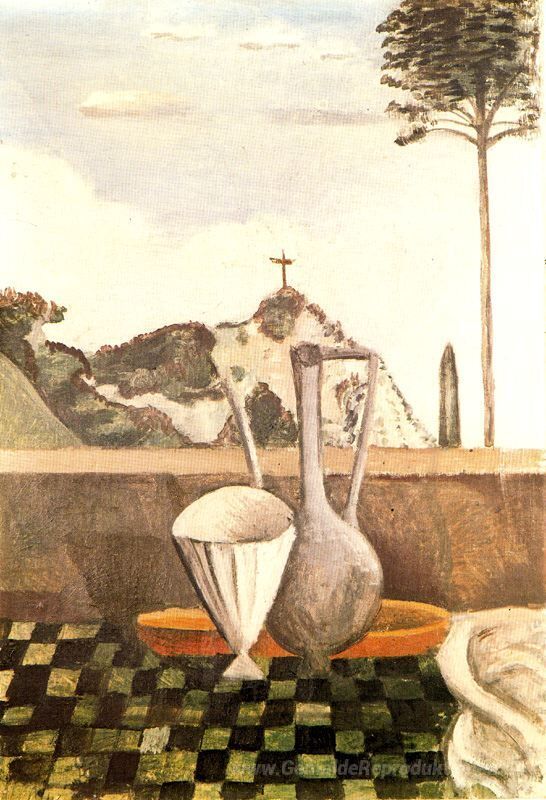 Wir bieten Ihnen eine handgefertigte Reproduktion auf Leinwand des berühmten Kunstwerks 'Das Stillleben vor dem Kreuz auf der Spitze des Berges' von Andre Derain, aus dem Reproduktionsmuseum.