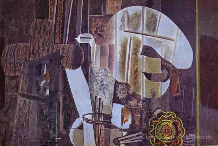 Wir bieten Ihnen eine handgefertigte Reproduktion auf Leinwand des berühmten Kunstwerks 'Das Studio (IV)' von Georges Braque, aus dem Reproduktionsmuseum.