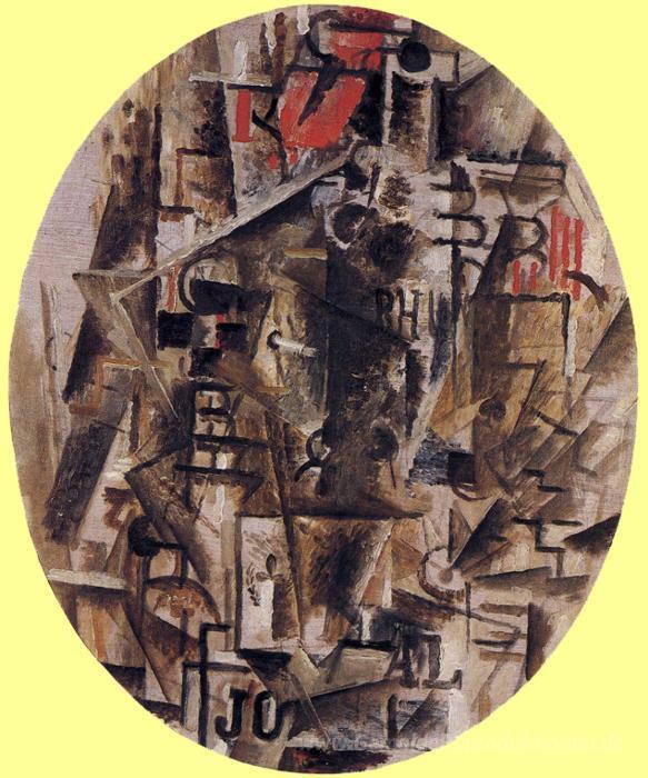 Wir bieten Ihnen eine handgefertigte Reproduktion auf Leinwand des berühmten Kunstwerks 'Die Flasche Rum' von Georges Braque, aus dem Reproduktionsmuseum.