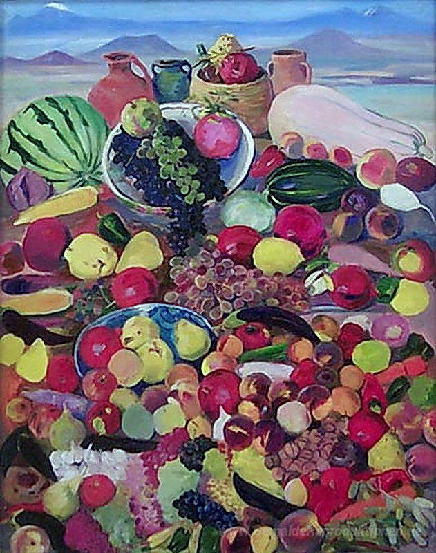 Wir bieten Ihnen eine handgefertigte Reproduktion auf Leinwand des berühmten Kunstwerks 'Die Früchte von felsigen Hängen des Aragats' von Martiros Saryan, aus dem Reproduktionsmuseum.