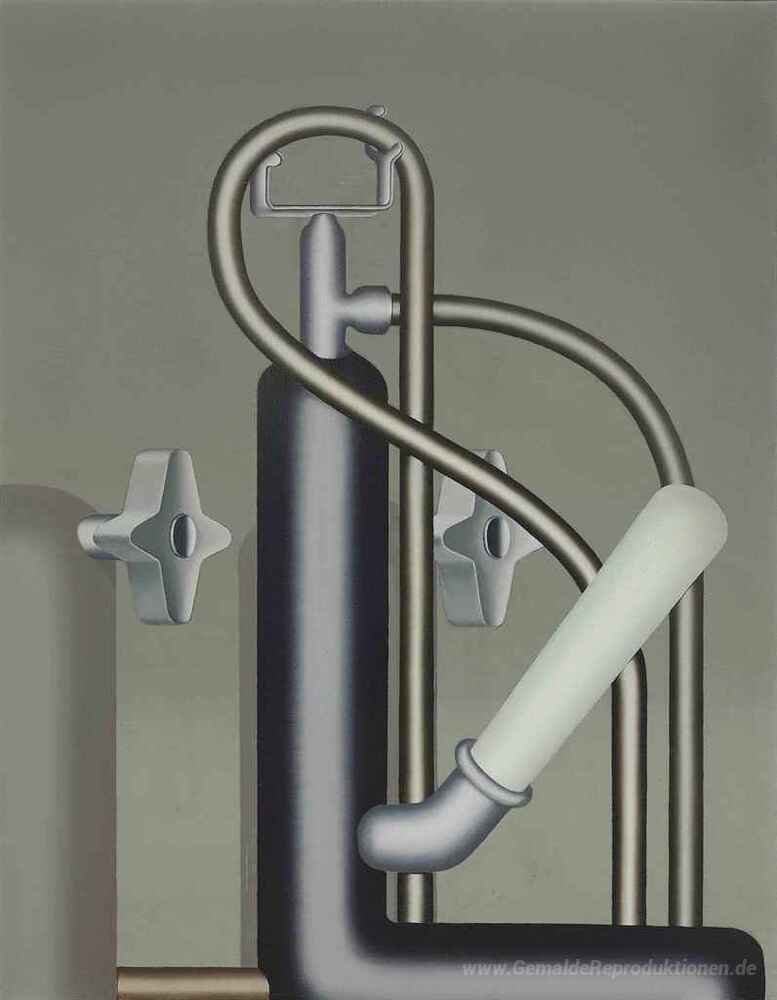Wir bieten Ihnen eine handgefertigte Reproduktion auf Leinwand des berühmten Kunstwerks 'Die Herrin' von Konrad Klapheck, aus dem Reproduktionsmuseum.