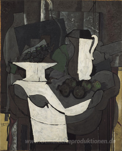 Wir bieten Ihnen eine handgefertigte Reproduktion auf Leinwand des berühmten Kunstwerks 'Die Schale der Trauben' von Georges Braque, aus dem Reproduktionsmuseum.