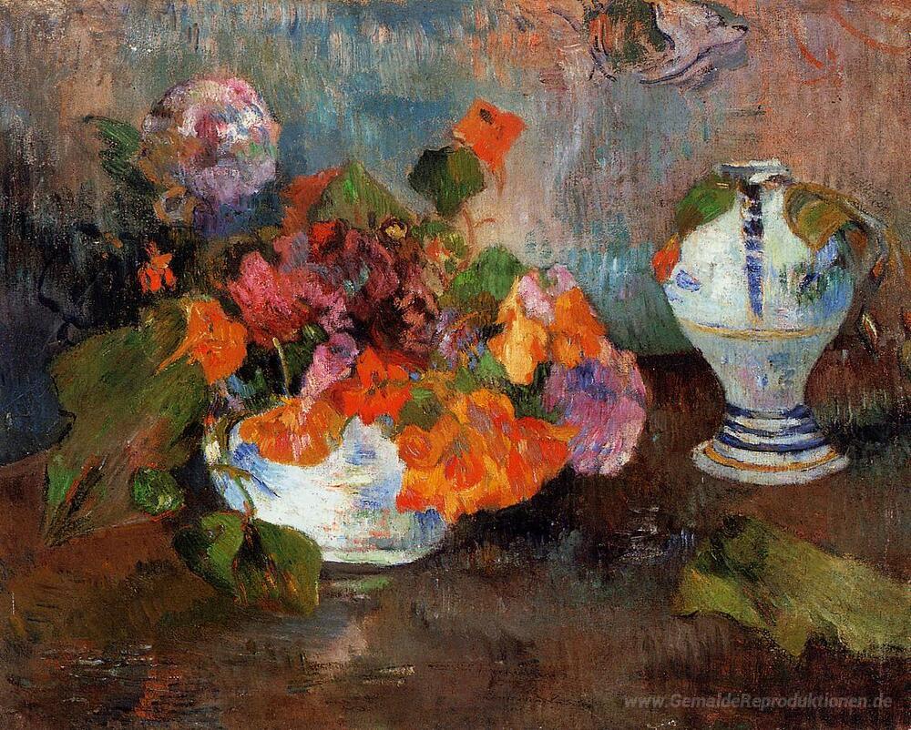 Willkommen in unserer exquisiten Kollektion von Ölgemälden, in der jedes Kunstwerk eine eigene Geschichte erzählt. Eines der herausragenden Stücke ist Die Vase von Kapuzinerkresse von dem berühmten Künstler Paul Gauguin, der für seinen einzigartigen, beeindruckenden Stil bekannt ist. Gauguin, ein Pionier des Post-Impressionismus, kombiniert lebendige Farben und expressiven Pinselstrich, um eine unverwechselbare Stimmung zu schaffen, die den Betrachter verzaubert.