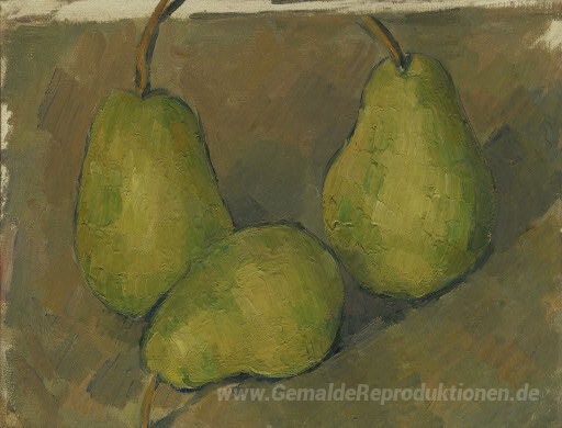 Wir bieten Ihnen eine handgefertigte Reproduktion auf Leinwand des berühmten Kunstwerks 'Drei Birnen' von Paul Cezanne, aus dem Reproduktionsmuseum.