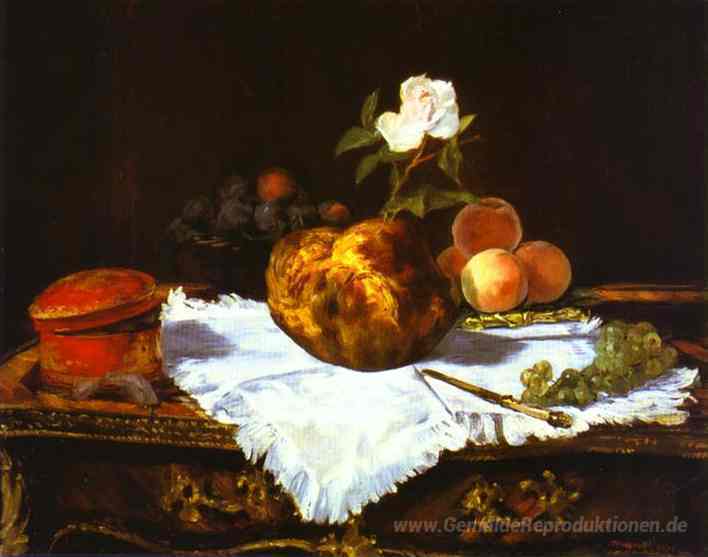 Wir bieten Ihnen eine handgefertigte Reproduktion auf Leinwand des berühmten Kunstwerks 'Ein Brioche' von Edouard Manet, aus dem Reproduktionsmuseum.