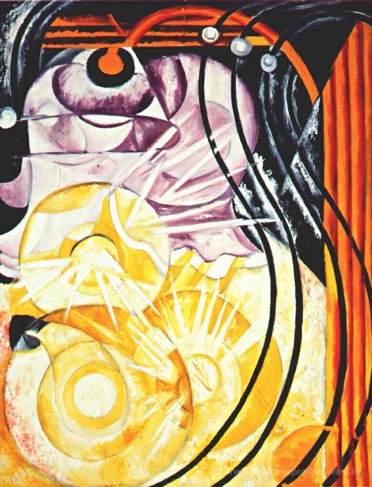 Wir bieten Ihnen eine handgefertigte Reproduktion auf Leinwand des berühmten Kunstwerks 'Elektrische Lampe' von Natalia Goncharova, aus dem Reproduktionsmuseum.