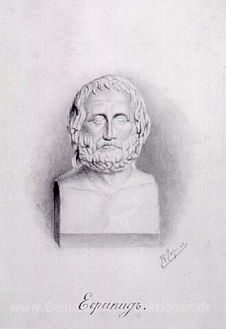 Wir bieten Ihnen eine handgefertigte Reproduktion auf Leinwand des berühmten Kunstwerks 'Euripides' von Nicholas Roerich, aus dem Reproduktionsmuseum.