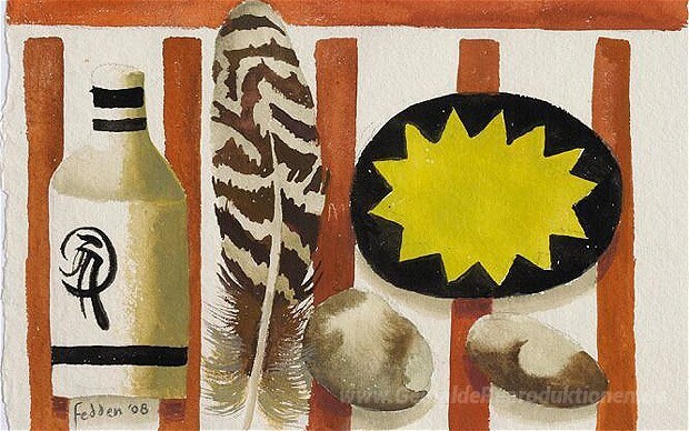 Wir bieten Ihnen eine handgefertigte Reproduktion auf Leinwand des berühmten Kunstwerks 'Feder und zwei Steine' von Mary Fedden, aus dem Reproduktionsmuseum.