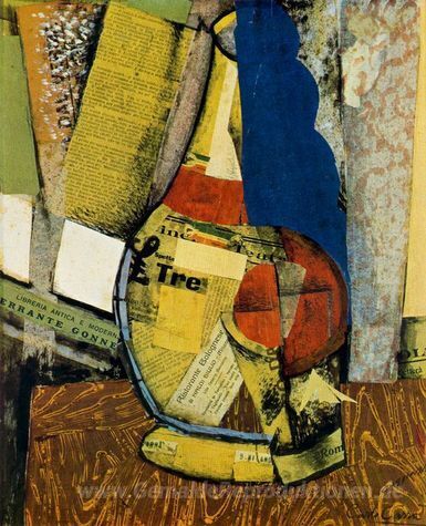 Wir bieten Ihnen eine handgefertigte Reproduktion auf Leinwand des berühmten Kunstwerks 'Fiasco e Bicchiere' von Carlo Carra, aus dem Reproduktionsmuseum.