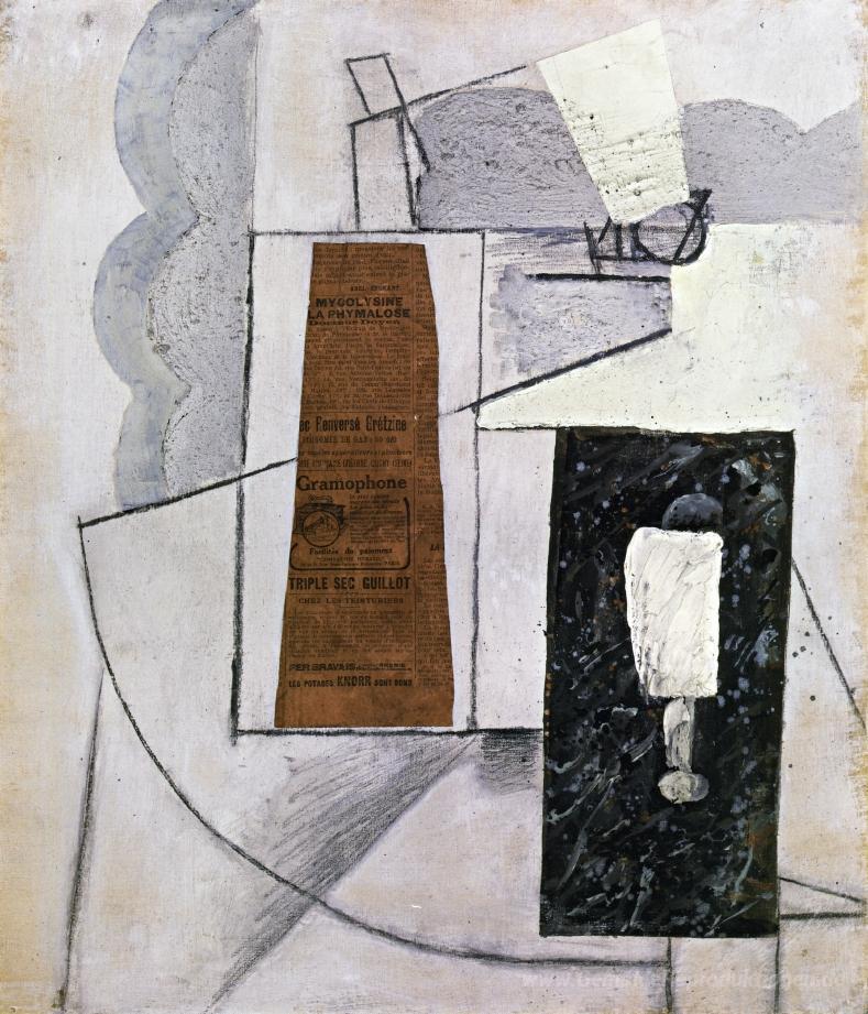 Wir bieten Ihnen eine handgefertigte Reproduktion auf Leinwand des berühmten Kunstwerks 'Flasche und Glas' von Juan Gris, aus dem Reproduktionsmuseum.
