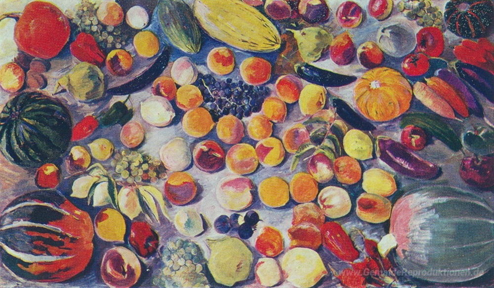 Wir bieten Ihnen eine handgefertigte Reproduktion auf Leinwand des berühmten Kunstwerks 'Früchte und Gemüse' von Martiros Saryan, aus dem Reproduktionsmuseum.