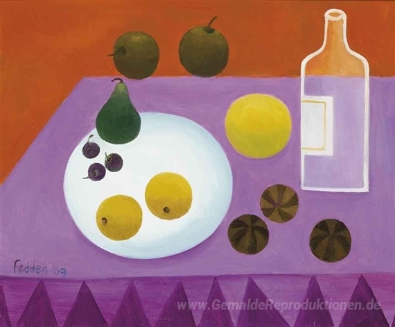 Wir bieten Ihnen eine handgefertigte Reproduktion auf Leinwand des berühmten Kunstwerks 'Frucht' von Mary Fedden, aus dem Reproduktionsmuseum.