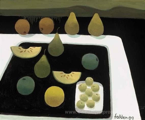 Wir bieten Ihnen eine handgefertigte Reproduktion auf Leinwand des berühmten Kunstwerks 'Frucht' von Mary Fedden, aus dem Reproduktionsmuseum.