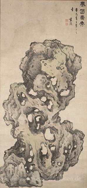 Wir bieten Ihnen eine handgefertigte Reproduktion auf Leinwand des berühmten Kunstwerks 'Garten-Felsen' von Lan Ying, aus dem Reproduktionsmuseum.