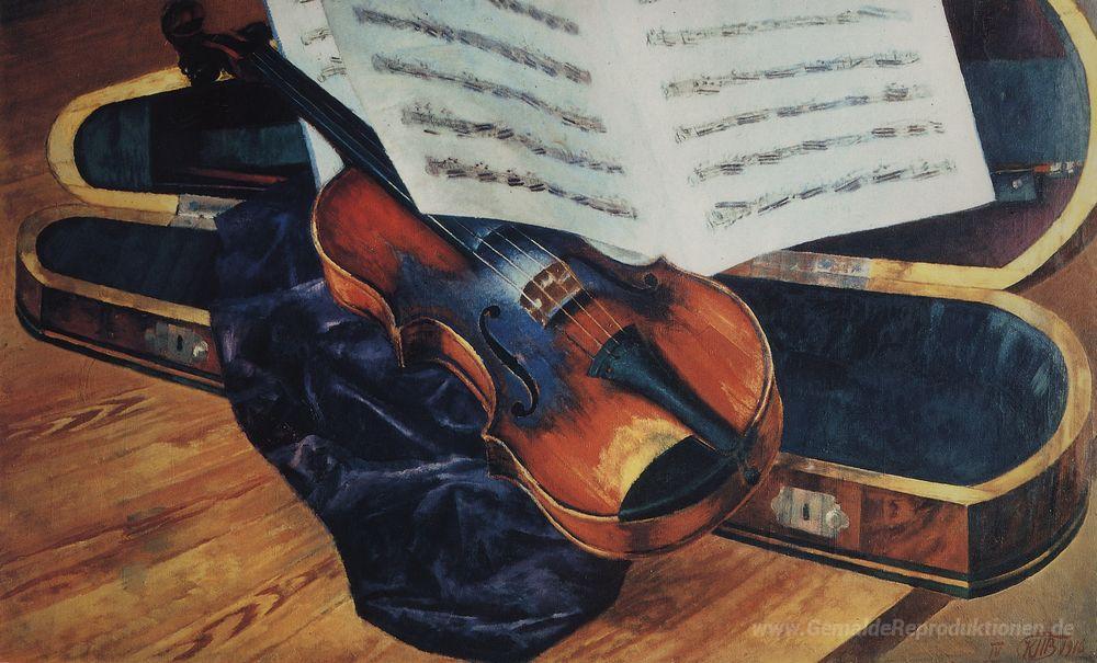 Wir bieten Ihnen eine handgefertigte Reproduktion auf Leinwand des berühmten Kunstwerks 'Geige' von Kuzma Petrov-Vodkin, aus dem Reproduktionsmuseum.