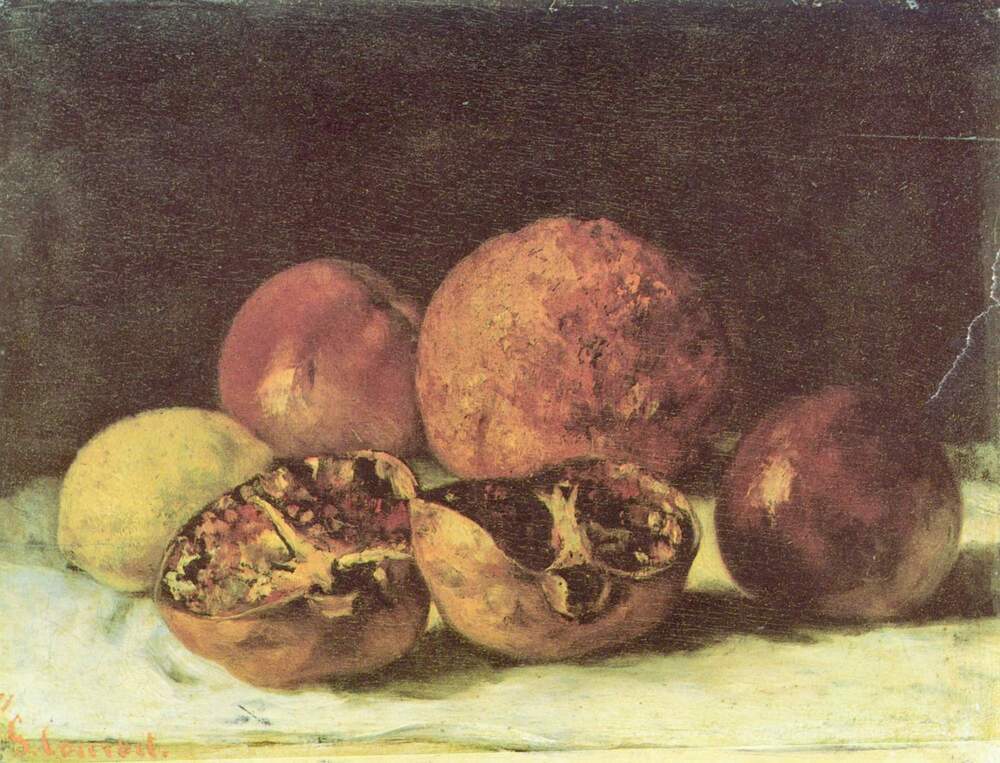 Wir bieten Ihnen eine handgefertigte Reproduktion auf Leinwand des berühmten Kunstwerks 'Granatäpfel' von Gustave Courbet, aus dem Reproduktionsmuseum.