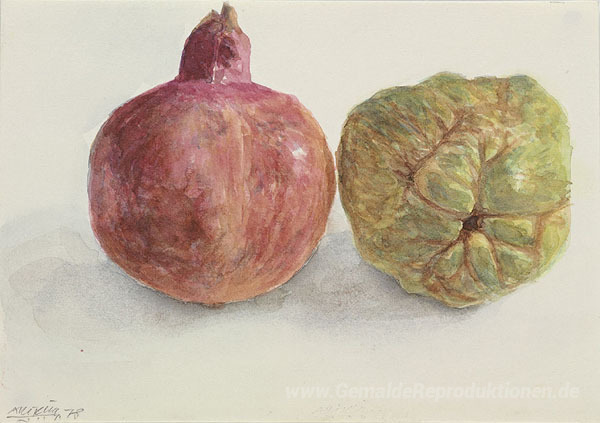 Wir bieten Ihnen eine handgefertigte Reproduktion auf Leinwand des berühmten Kunstwerks 'Granatapfel und Quitten' von Avigdor Arikha, aus dem Reproduktionsmuseum.