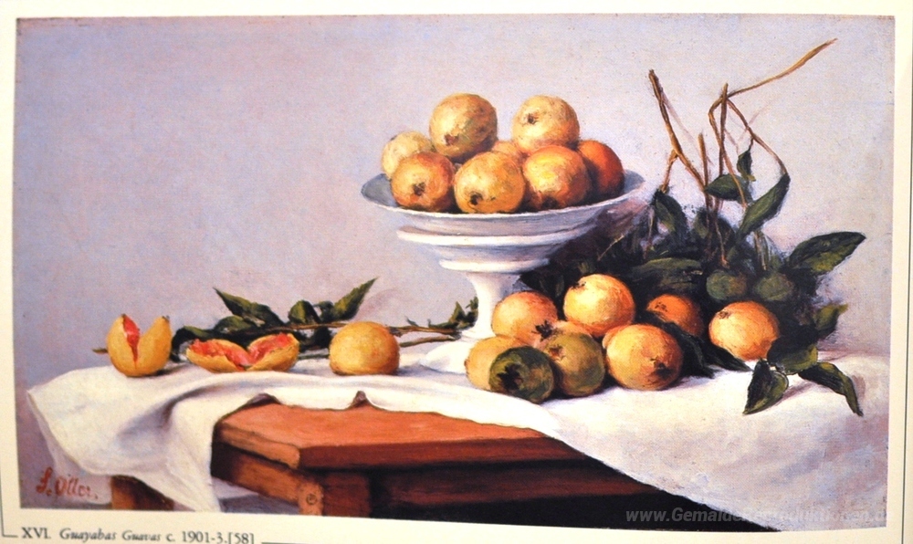 Wir bieten Ihnen eine handgefertigte Reproduktion auf Leinwand des berühmten Kunstwerks 'Guayabas' von Francisco Oller, aus dem Reproduktionsmuseum.