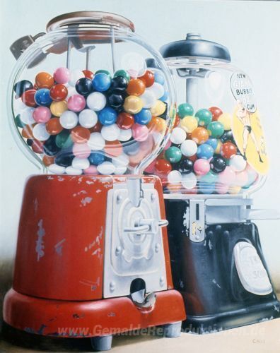 Wir bieten Ihnen eine handgefertigte Reproduktion auf Leinwand des berühmten Kunstwerks 'Gumball I' von Charles Bell, aus dem Reproduktionsmuseum.