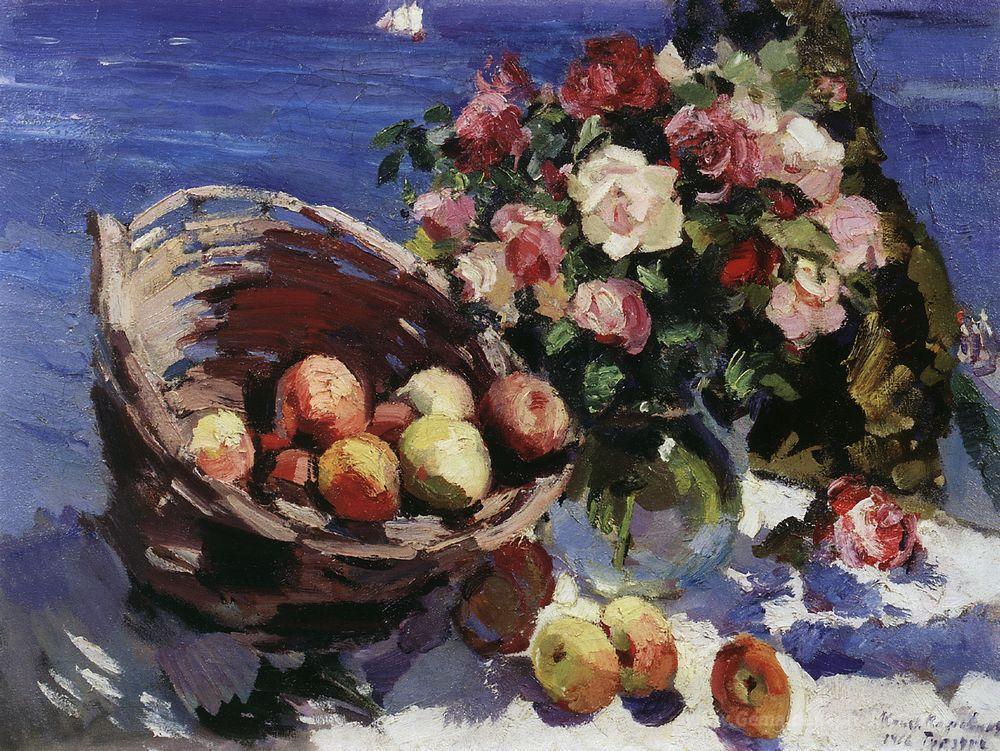 Willkommen in der faszinierenden Welt der Ölgemälde, wo kunstvoller Ausdruck und zeitlose Eleganz aufeinandertreffen. Eines der herausragenden Werke in unserer Sammlung ist Gursuf, geschaffen von dem renommierten Künstler Konstantin Korovin. Korovin, ein bedeutender Vertreter des russischen Impressionismus, fängt in seinen Gemälden die stimmungsvolle Schönheit der Natur und der menschlichen Emotionen ein, wobei er meisterhaft Licht und Farbe miteinander verbindet.