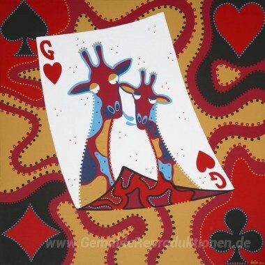 Wir bieten Ihnen eine handgefertigte Reproduktion auf Leinwand des berühmten Kunstwerks 'Herz der Giraffe ist Trumpf' von Mr. Dejo, aus dem Reproduktionsmuseum.