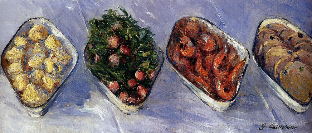 Wir bieten Ihnen eine handgefertigte Reproduktion auf Leinwand des berühmten Kunstwerks 'Hors d'oeuvre' von Gustave Caillebotte, aus dem Reproduktionsmuseum.
