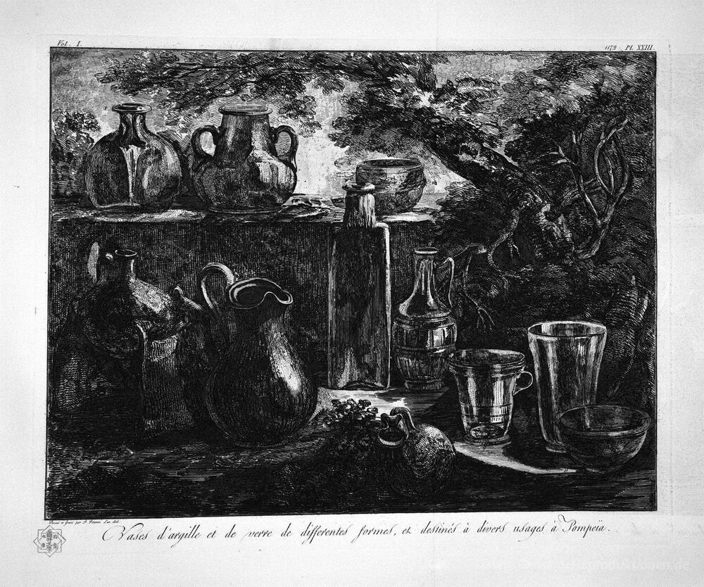 Wir bieten Ihnen eine handgefertigte Reproduktion auf Leinwand des berühmten Kunstwerks 'Jars aus Lehm und Glas in Pompeji' von Giovanni Battista Piranesi, aus dem Reproduktionsmuseum.