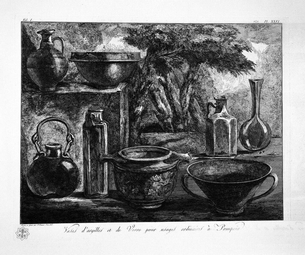 Wir bieten Ihnen eine handgefertigte Reproduktion auf Leinwand des berühmten Kunstwerks 'Jars aus Lehm und Glas in Pompeji' von Giovanni Battista Piranesi, aus dem Reproduktionsmuseum.