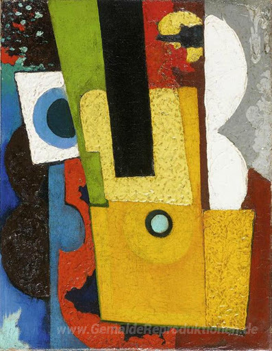 Wir bieten Ihnen eine handgefertigte Reproduktion auf Leinwand des berühmten Kunstwerks 'Komposition mit Gitarre' von Amadeo de Souza-Cardoso, aus dem Reproduktionsmuseum.