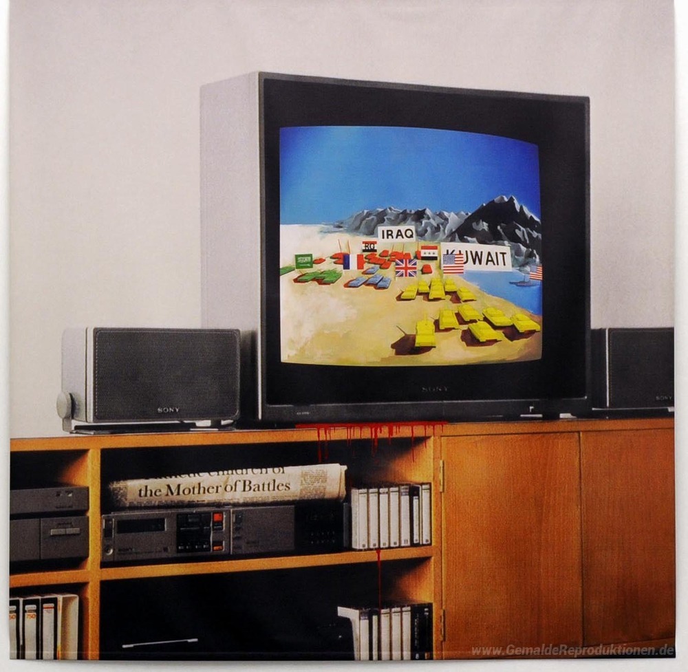 Wir bieten Ihnen eine handgefertigte Reproduktion auf Leinwand des berühmten Kunstwerks 'Kriegs Spiele' von Richard Hamilton, aus dem Reproduktionsmuseum.
