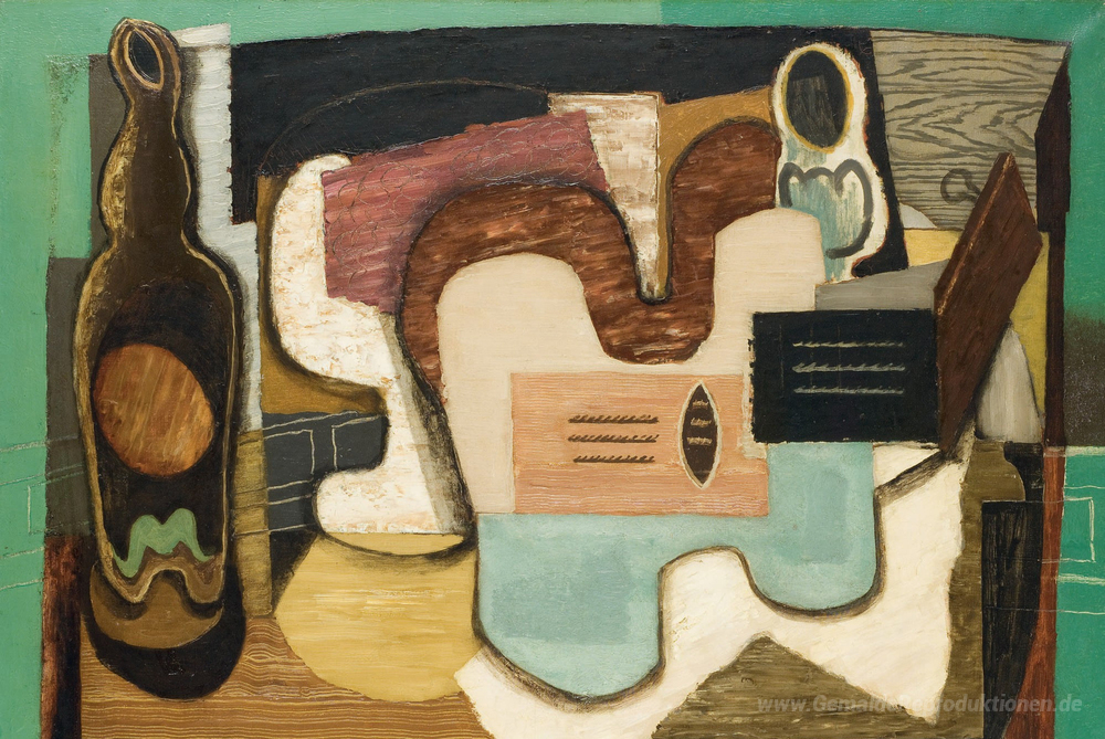 Wir bieten Ihnen eine handgefertigte Reproduktion auf Leinwand des berühmten Kunstwerks 'La cithare' von Louis Marcoussis, aus dem Reproduktionsmuseum.