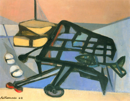 Wir bieten Ihnen eine handgefertigte Reproduktion auf Leinwand des berühmten Kunstwerks 'La Graticola' von Giuseppe Santomaso, aus dem Reproduktionsmuseum.