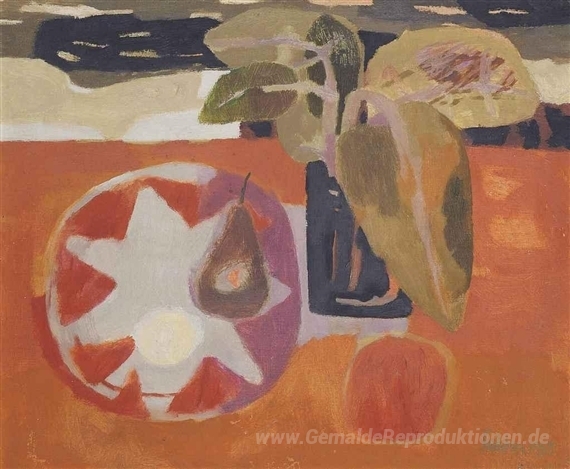 Wir bieten Ihnen eine handgefertigte Reproduktion auf Leinwand des berühmten Kunstwerks 'Leaves' von Mary Fedden, aus dem Reproduktionsmuseum.