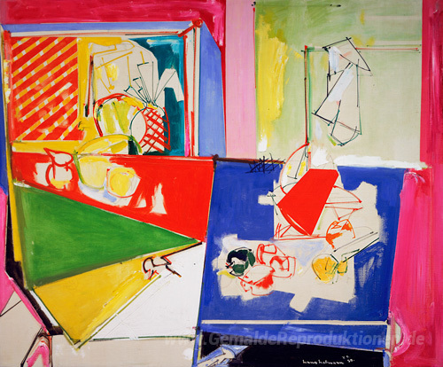 Wir bieten Ihnen eine handgefertigte Reproduktion auf Leinwand des berühmten Kunstwerks 'Magenta und Blau' von Hans Hofmann, aus dem Reproduktionsmuseum.