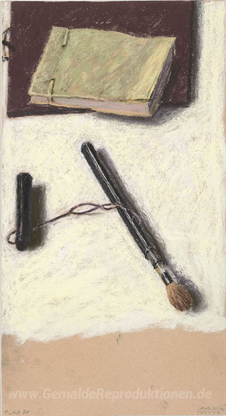 Wir bieten Ihnen eine handgefertigte Reproduktion auf Leinwand des berühmten Kunstwerks 'Malerpinsel und Skizzenbücher' von Avigdor Arikha, aus dem Reproduktionsmuseum.