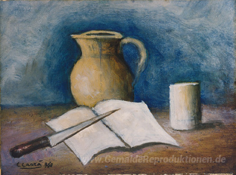 Wir bieten Ihnen eine handgefertigte Reproduktion auf Leinwand des berühmten Kunstwerks 'Natura morta' von Carlo Carra, aus dem Reproduktionsmuseum.
