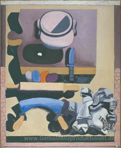 Wir bieten Ihnen eine handgefertigte Reproduktion auf Leinwand des berühmten Kunstwerks 'Nature morte au hachoir' von Le Corbusier, aus dem Reproduktionsmuseum.