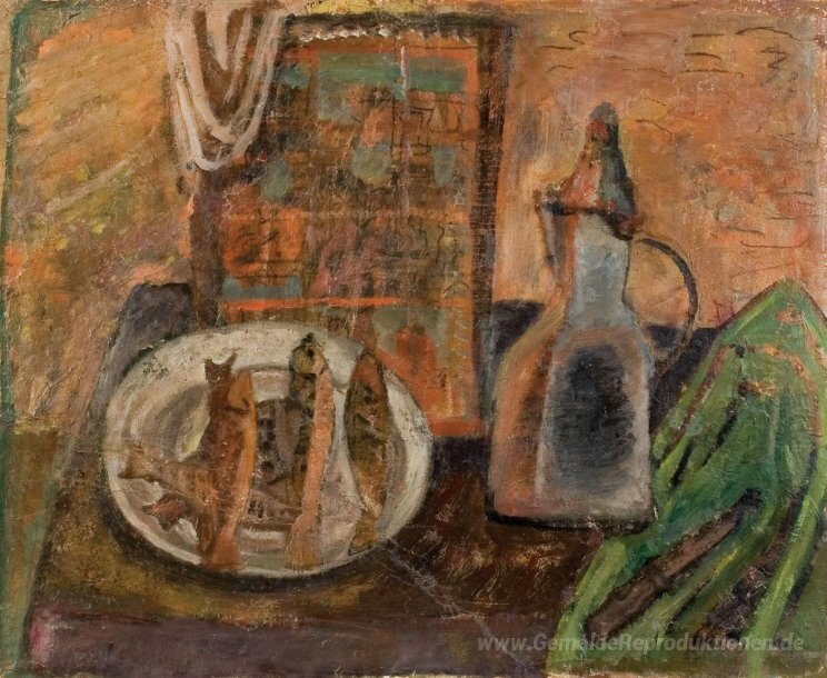 Wir bieten Ihnen eine handgefertigte Reproduktion auf Leinwand des berühmten Kunstwerks 'Nature morte au Pichet' von Aurel Cojan, aus dem Reproduktionsmuseum.