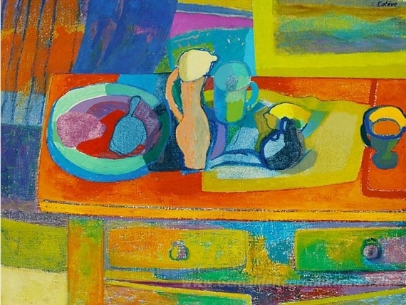 Wir bieten Ihnen eine handgefertigte Reproduktion auf Leinwand des berühmten Kunstwerks 'Nature morte au Pichet' von Maurice Esteve, aus dem Reproduktionsmuseum.