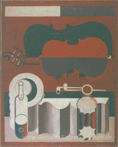 Wir bieten Ihnen eine handgefertigte Reproduktion auf Leinwand des berühmten Kunstwerks 'Nature morte au violon rouge' von Le Corbusier, aus dem Reproduktionsmuseum.